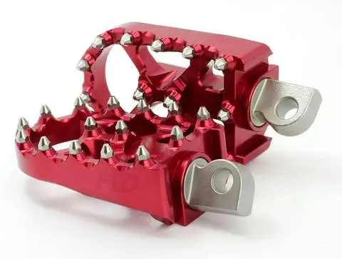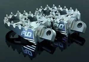 Foot pegs have our exclusive pitch adjustment hardware that allows you to change the angle of the foot pegs to the riding position preferred by the rider. Replaceable stainless steel teeth (Cleats)