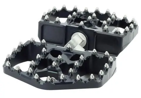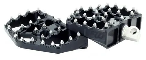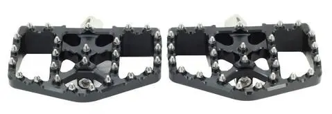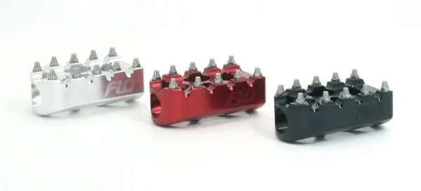 FLO MOTORSPORTS BMX STYLE Mini Boards Machined from Highly durable and light weight alloy. ~Extra wide platform, 5” Long by 3.5” Wide Pegs can be rotated full 360 degrees to any angle and then locked down with stainless steel hardware (included) Foot pegs have our exclusive pitch adjustment hardware that allows you to change the angle of the foot pegs to the riding position preferred by the rider. Replaceable stainless steel teeth (Cleats)